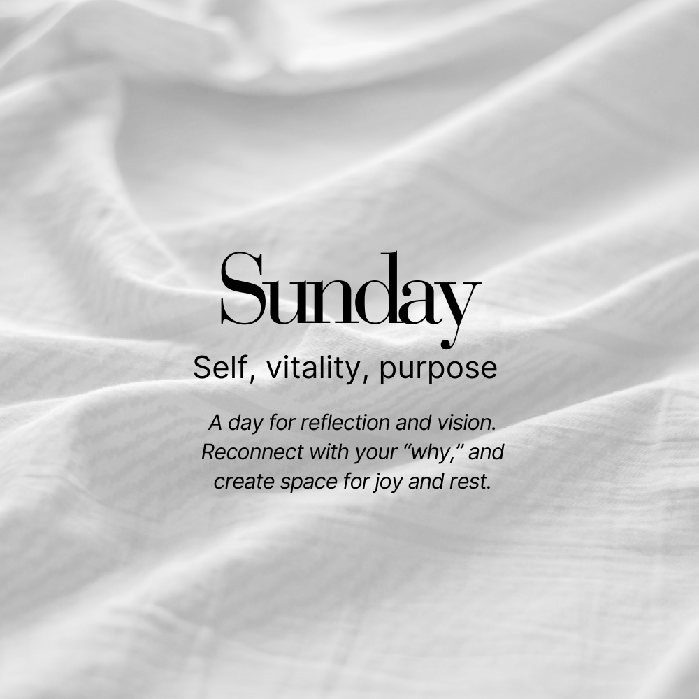 Below, you’ll find what each day asks of you, along with reflection prompts to help you move through your week with more intention.